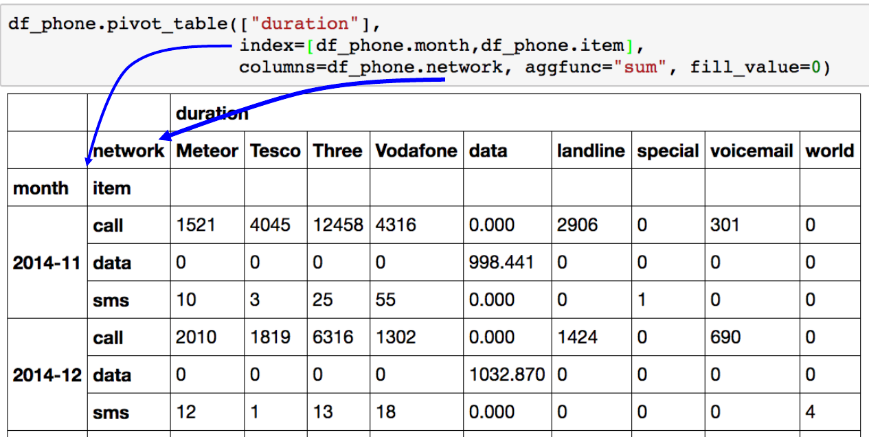 - Pivot table의 특수한 형태